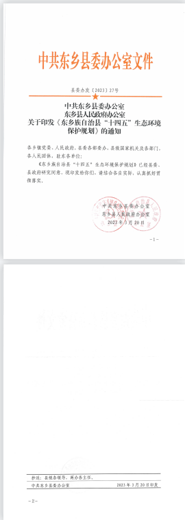 中共东乡县委办公室东乡县人民政府办公室关于印发《东乡族自治县“十四五”生态环境保护规划》的通知
