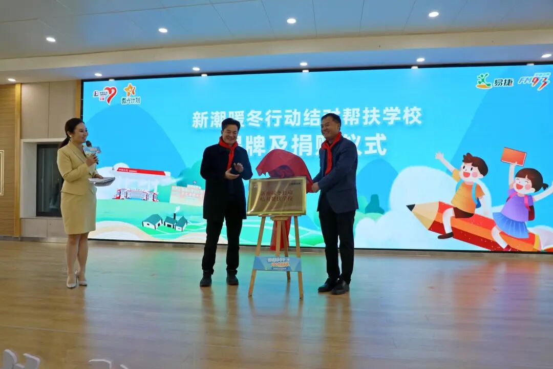在石化易捷小学,东乡县与中石化易捷公司联袂启动易捷微光计划“情暖东乡学子同心共育未来”主题活动,聚焦乡村教育提质需求,多项精准帮扶举措落地:“新潮暖冬行动结对帮扶学校”揭牌暨捐赠仪式顺利举行,为学子们送上冬日关怀;“易享健康——校园公益医生”项目正式启动,为乡村校园健康管理提供有力支撑;中国美术学院“乡村艺课”试点学校、“石化易捷小学知识赋能单位”先后授牌,为东乡县乡村教育注入优质资源。最后,为优秀师生代表颁发了奖教金、奖学金,激励师生深耕学业、潜心育人,学子们则以精心编排的《花开东乡》节目致谢,现场氛围温暖而热烈。