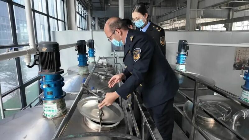 最后前往哈麦德醋厂,县市场监管局工作人员在厂内开展食品安全检测,确保食安监管到位。