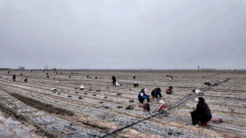 务工队伍抵达种植地点后,大家有序领取洋葱种子,迅速投入到春耕生产中。田间地头,一垄垄田埂整齐排列,务工群众身着劳作服,迎着春日暖阳俯身播种、扶苗覆土,现场一派干劲十足、井然有序的劳作景象。