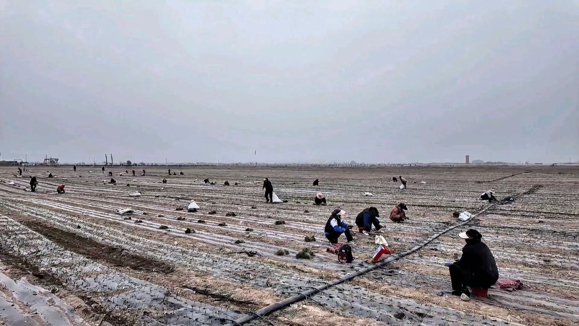 务工群众正在进行洋葱苗栽植工作。东乡县融媒体记者 高建义 摄