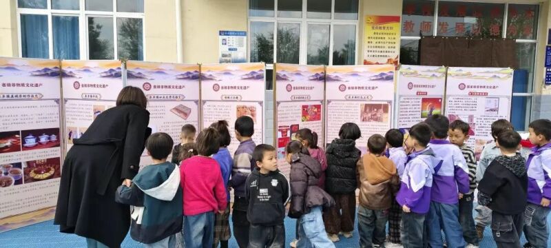 活动现场集中呈现了东乡县国家、省、州、县四级非物质文化遗产图文展板,通过现场讲解、互动问答等形式,生动展现东乡县丰富的非遗资源。学生们认真聆听工作人员的讲解,不时提问交流,在浓厚的文化氛围中加深了对家乡文化的理解与认同。县文化馆向学校捐赠了《东乡族口头文学与语言》《米拉尕黑》《老东乡逸事》《拉马川》等地方书籍及非遗宣传资料、“文房四宝”等共计400余册(件),为学生进一步了解本土文化提供了丰富的阅读资源。