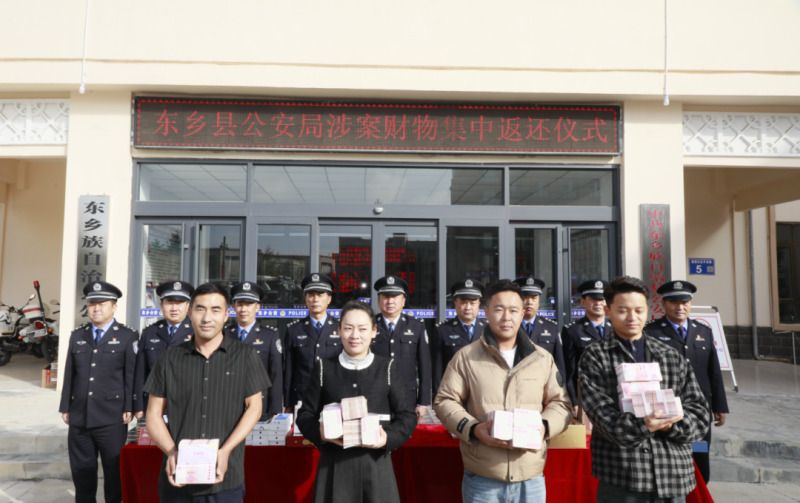 为有效震慑违法犯罪,维护辖区群众根本利益,10月21日,东乡县公安局举行涉案财物集中返还仪式,依法将近期追缴的涉案财物集中返还受害群众。副县长、县公安局党委书记、局长马文波,县公安局党委副书记、政委李国荣,局党委相关成员、各所队室负责人、刑侦大队及经侦大队全体民辅警和部分受害群众代表参加。