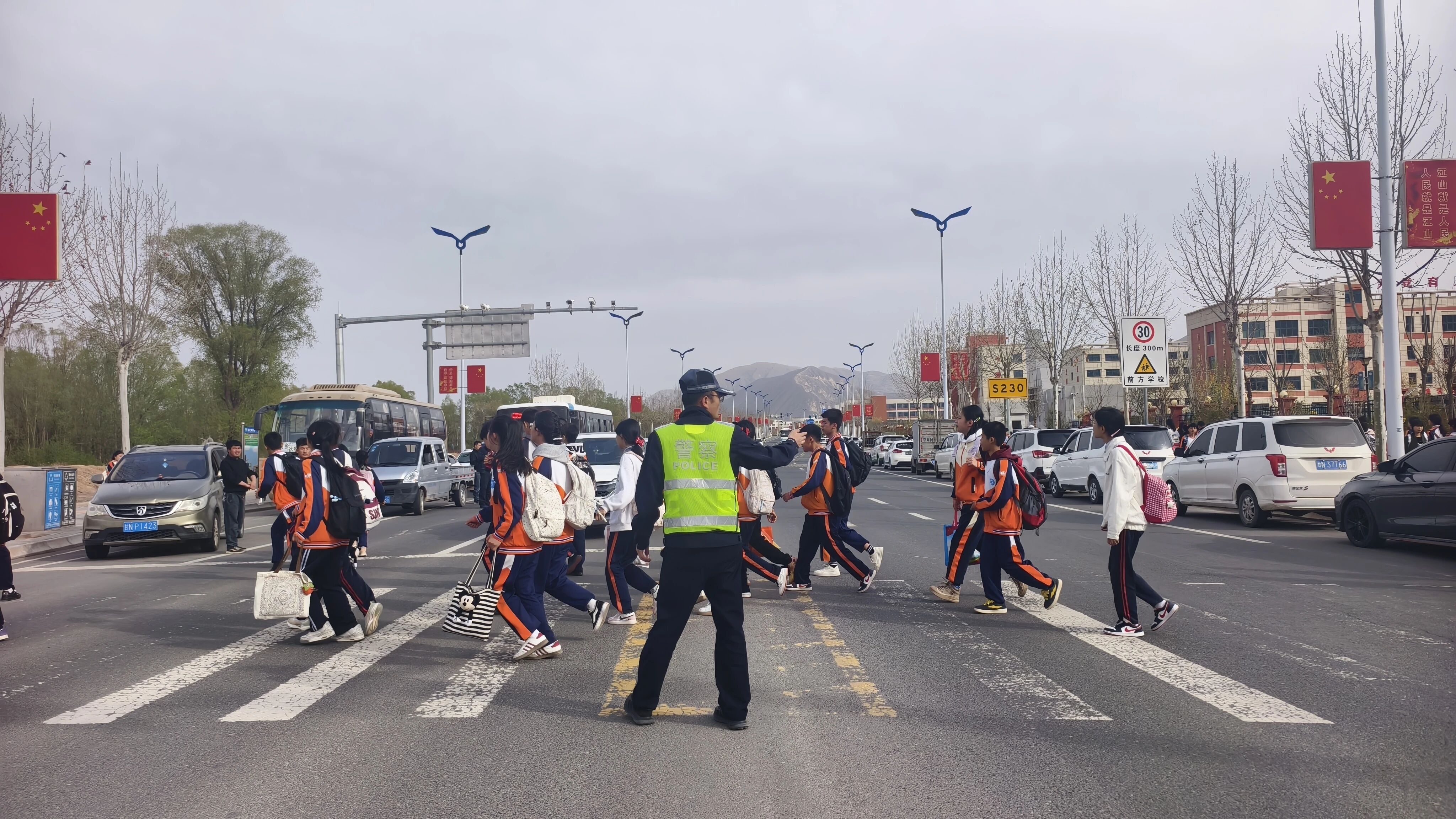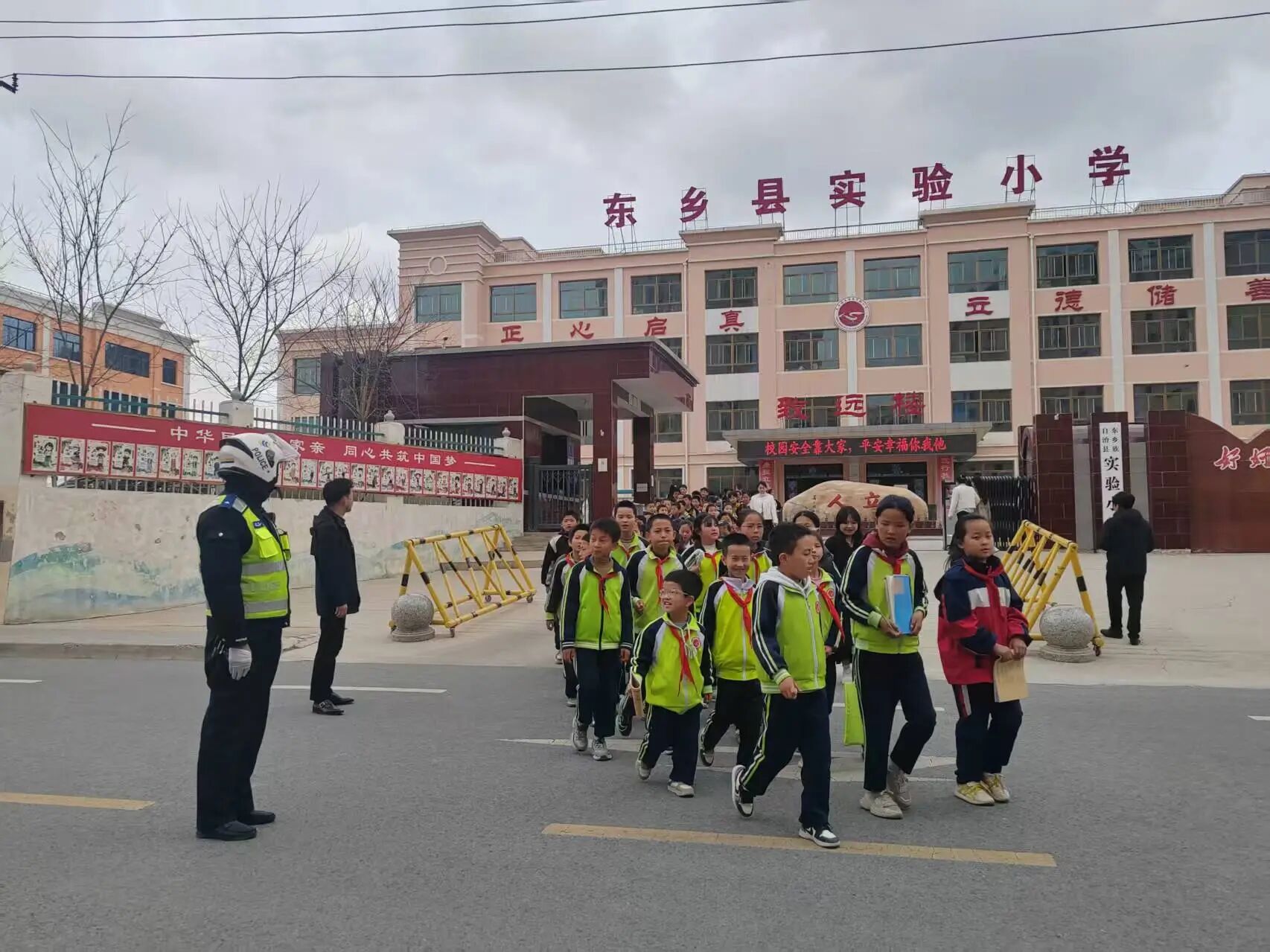 东乡县公安局交管大队常态化坚守“护学岗”守护师生出行安全