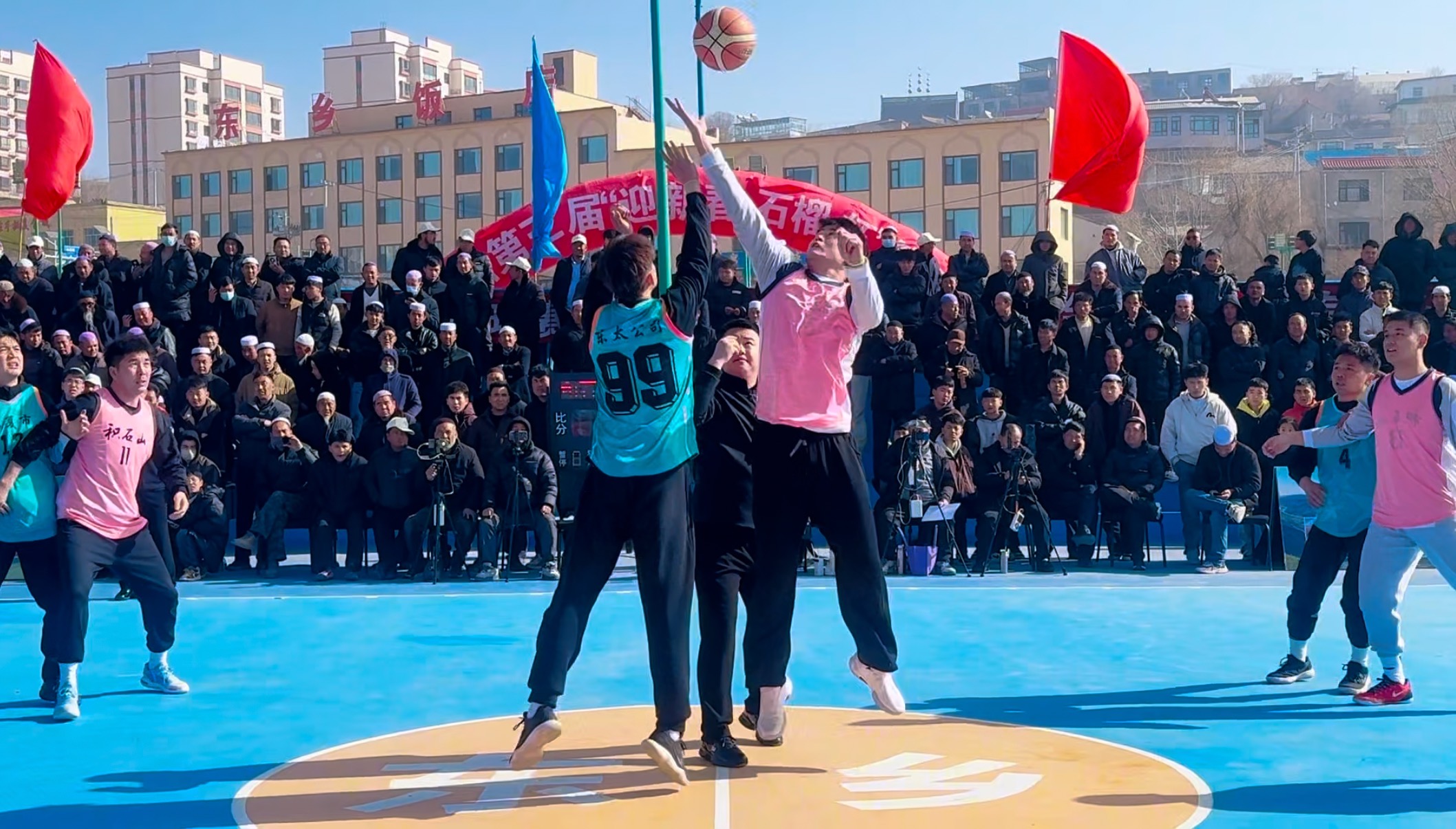 正式比赛在积石山代表队与临夏市代表队角逐中拉开。场上参赛队伍活力十足、精神百倍,每一位参赛队员都技术精湛、球品一流,三分、盖帽、突围、抢断的精彩瞬间不断上演。运动员们用实力展现着各自县市的精神和风采,裁判们紧张有序地观察赛况、吹哨判罚,观众们的注意力被紧紧地吸引在飞来抢去的篮球之上,天气很冷,却抵挡不住群众看球赛的热情。