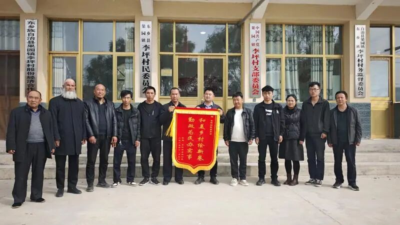 村民给村委会赠送“和美乡村绘新卷,勤政为民办实事”锦旗。东乡县融媒体中心记者 周学虎 摄