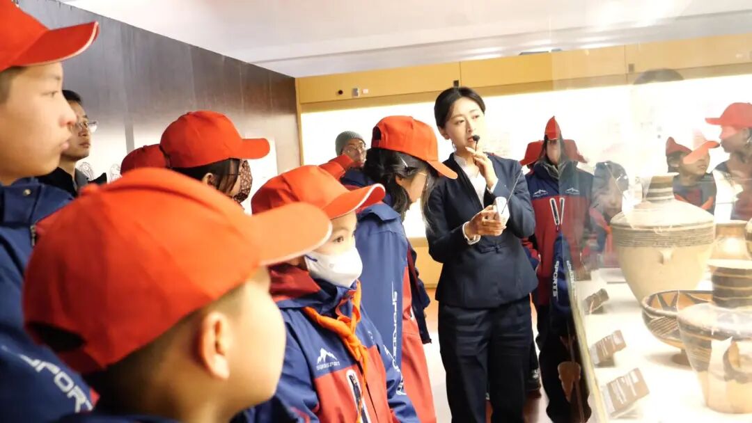 抵达甘肃省博物馆,孩子们在讲解员带领下参观彩陶、石窟文化等展区,聆听文物故事。彩陶展区,大家为古朴精美的彩陶惊叹,讲解员讲解鲵鱼纹彩陶瓶相关历史,让孩子们感受远古农耕文明与先民智慧;铜奔马展区,孩子们被镇馆之宝吸引,在讲解中了解其历史与价值,近距离领略汉代青铜艺术的匠心神韵。