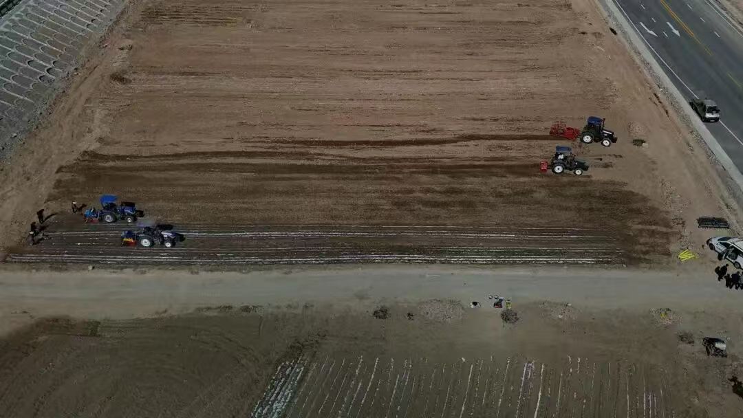 旋耕机和覆膜机正在作业。东乡县融媒体中心记者 高建义 摄