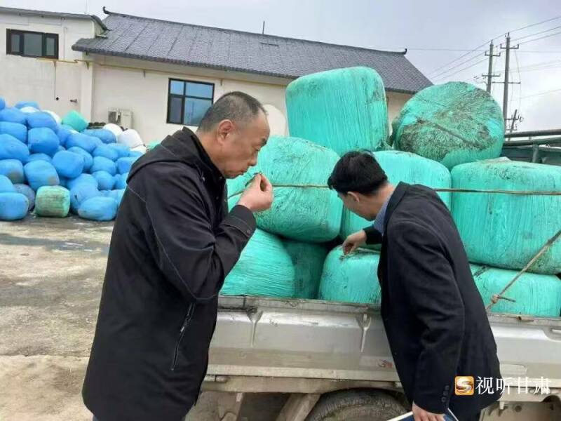 张秀勇检查饲草质量。东乡县融媒体中心记者唐雨晴 摄