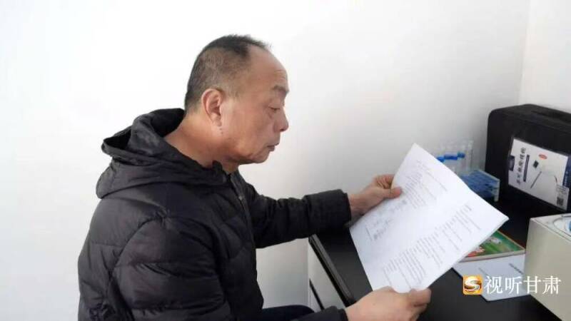 张秀勇查看相关资料。东乡县融媒体中心记者唐雨晴 摄