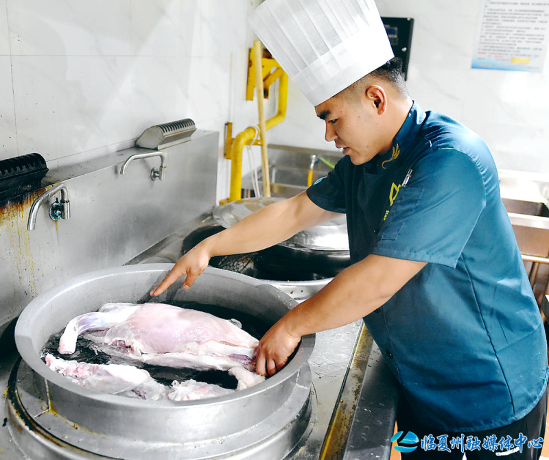 好食材需配好手艺,东乡手抓羊肉的烹煮堪称“减法的艺术”,以极简调味激发肉质本真之味,每一步都暗藏匠心。制作之初,需将新鲜羯羊肉用冷水浸泡40分钟,让羊肉充分泡出血水,这是去除腥气、保证肉质鲜嫩的关键一步;而备好的花椒粒、生姜片和草果等香料,用开水煮开后反复淘洗至水变清澈,褪去香料的杂味,只留纯粹的香气。待羊肉泡好、香料洗净,再准备好大葱、大蒜及食盐等配料,便可入锅煮制。