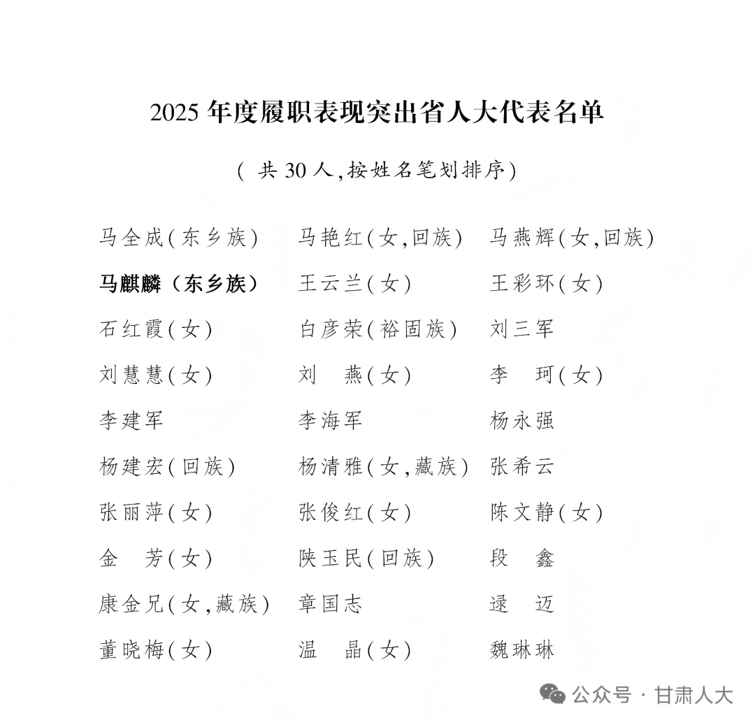 东乡县1人入选2025年度履职表现突出省人大代表