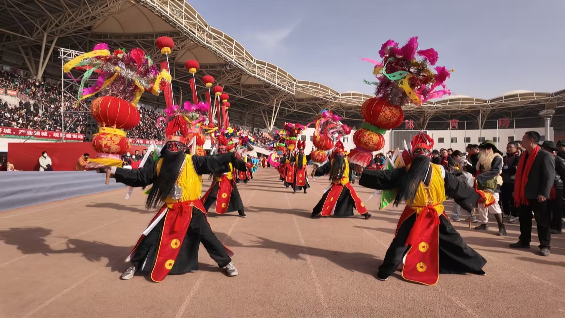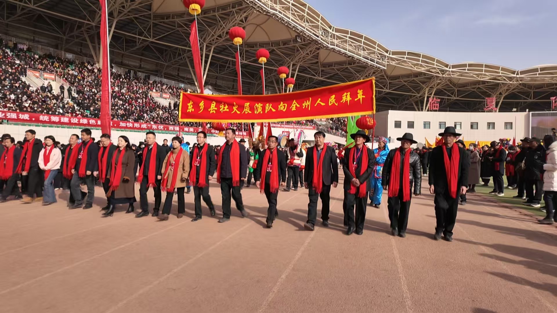 东乡县社火展演队首次在全州春节社火汇演现场列队亮相,向全州人民致以新春的美好祝福。东乡县融媒体中心记者 贾蕊蕊 摄
