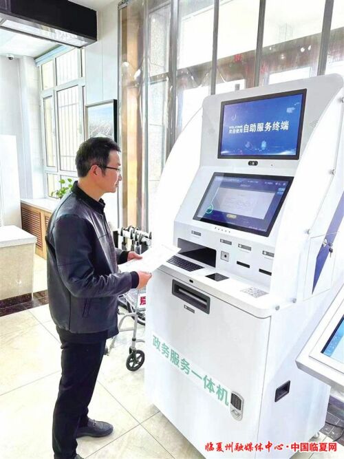 近日,我州在130个乡镇安装159台政务服务自助终端一体机。目前,已实现医保个人权益凭证打印、医保居民(职工)缴费信息查询、门诊慢性特殊疾病病种查询、不动产登记证明打印等便民服务。图为群众在广河县政务大厅自助终端机上打印医保缴费证明。