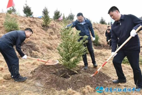 李海默说,植树造林,功在当代、利在千秋。全州上下要深入贯彻习近平生态文明思想,全面落实习近平总书记关于全民义务植树的重要指示精神,把植树造林作为生态建设的重要举措,扎实开展“绿满临夏”行动,全力打造黄河上游生态综合治理先行地。要突出交通干线、河库沿线、城镇乡村等重点区域,坚持因地制宜、适地适树、见缝插绿,科学开展大规模国土绿化,强化苗木后期抚育管护,确保栽一棵活一棵、植一片绿一方。要积极开发林草资源,扶持发展林果经济,深化林权改革,创新探索生态产品价值实现路径,推动绿水青山转变为金山银山。要以学习贯彻《生态环境法典》为契机,压紧靠实各级林长责任,广泛开展宣传实践活动,营造全社会支持参与植树造林的浓厚氛围,增强全民爱绿、植绿、护绿、兴绿的生态文明意识。