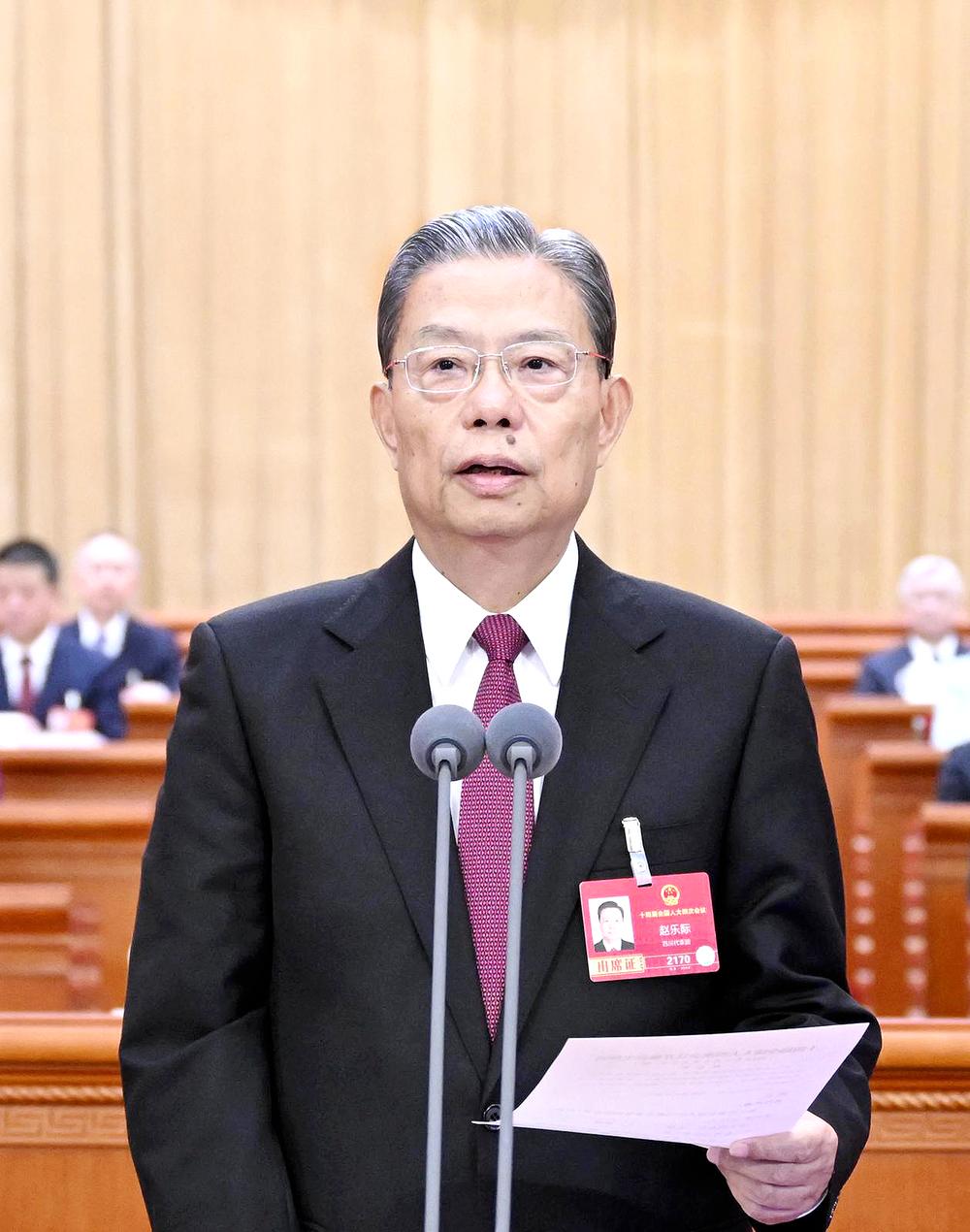 3月5日上午,第十四届全国人民代表大会第四次会议在北京人民大会堂开幕。赵乐际主持开幕会。 新华社记者 申宏 摄